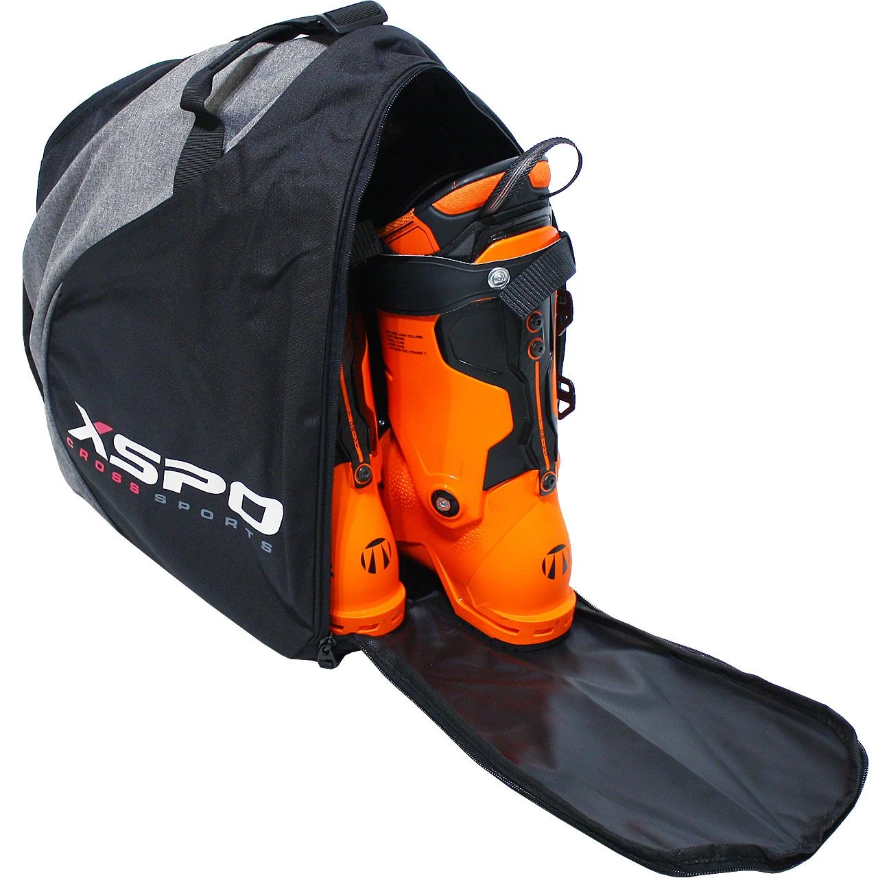 Deze skischoentas in XSPO design biedt ruimte voor een paar skischoenen en heeft ook een apart vak voor een helm.